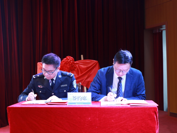 吕延文和汪史唯签订校警合作协议书。王顺大和徐须实为“江南网页版大学生思想政治教育实践基地”和“衢州市公安局辅警人才培养培训基地”揭牌。
