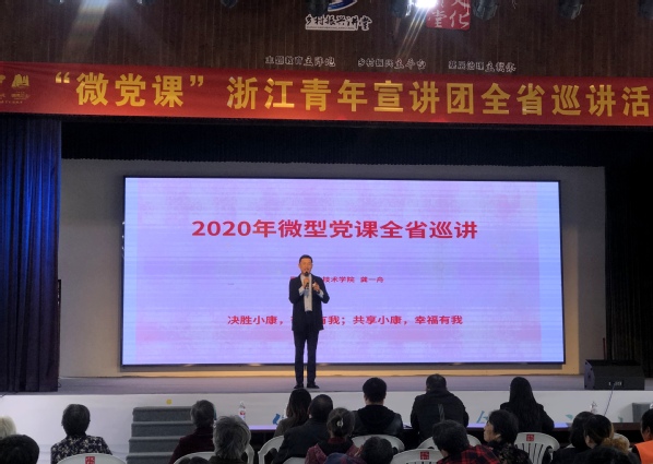 今年7月,浙江省第十一届微型党课大赛成功举办,并成立了“微党课”浙江青年宣讲团。10月下旬起,由全省118名青年组成的宣讲团,分五路奔赴机关、企业、学校、农村文化礼堂等全省百个宣讲点,进行百余场微型党课巡回宣讲,讲述小康路上的感人事迹、“重要窗口”建设中的奋斗故事,让党的创新理论“飞入寻常百姓家”,推动新思想在浙江大地结出更丰硕的果实。