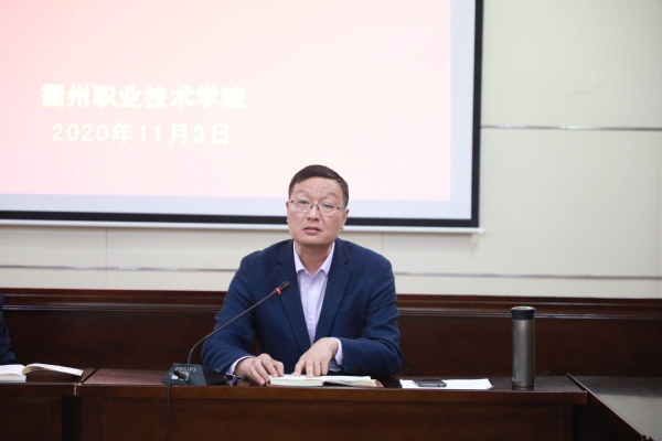 徐须实就学校如何贯彻落实十九届五中全会精神,把全校师生员工的思想和行动统一到中央、省委、市委的决策部署上来,把全校师生员工的智慧和力量汇聚到学校下一步的发展建设上来,谈了三点意见:一是学习贯彻全会精神是当前首要政治任务,全校上下要迅速行动起来,切实将思想行动统一到中央的重大决策部署上来。要学深、弄通、悟透本次全会精神。把学习、贯彻、落实十九届五中全会、全省全市领导干部大会精神作为当前的首要政治任务,统一思想,凝聚共识,以更强的责任心、更高的自我要求、更饱满的热情投身到学校的发展建设中;要迅速掀起学习全会精神的热潮。分管领导要指导学,部门领导要带头学,广大师生要通过宣讲、党课多样学,真正把十九届五中全会精神传达到每一位师生。充分发挥学校宣传阵地作用,通过转播转载、视频图文、师生感言、贯彻举措等形式,对全会精神进行全方位、立体化的解读、宣传,在全校上下营造浓厚的宣传氛围。二是要坚持以全会精神为指引,结合省市“十四五”规划编制精神,高水平、高质量制定好学校“十四五”发展规划。学校的“十四五”发展规划编制工作要坚持以全会精神为指引,认真贯彻《国家职业教育改革实施方案》和省委市委的决策部署,坚持和加强党的全面领导,以党建为统领,加强学校发展目标的前瞻性思考、全局性谋划、战略性布局,确保各项规划更加适应时代要求、更加符合发展规律、更加体现全校师生员工的意愿。学校的“十四五”发展规划编制要主动对接地方发展规划,紧紧围绕和跟进市委市政府中心工作和战略部署,各部门在编制过程中要加强与市、县相关部门的对接联系,主动把地方重点发展规划思路纳入到学校的发展规划中,进一步提升学校在区域经济社会发展中的参与度和贡献率,形成学校与地方发展的良性互动。学校的“十四五”发展规划编制要紧紧围绕学校“双高”建设目标,把“双高”建设举措融入到学校的“十四五”发展规划中,推进“双高”建设目标与学校“十四五”发展规划的融合贯通。学校的“十四五”发展规划编制要牢牢抓住“强优势、补短板、创特色”的各项改革创新举措。三是要把学习贯彻全会精神和当前学校重点推进工作紧密结合起来,扎实做好当前工作,奋力完成年度各项工作任务。慎终如始抓好秋冬季校园疫情防控工作;积极开展“双高”建设项目工作;认真筹备召开好学校第二次党代会;抓好五个专题调研的深化落实;抓好两项“建议”的对接落地;推进落实四省边际职业培训联盟实体化运作和衢州市职业教育集团筹建工作;深化推进服务地方各项工作;持续推进学校各项重点工作。
