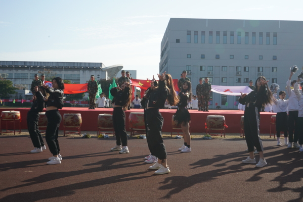 休闲体育专业的同学为大家带来旗鼓表演。红旗飘飘、战鼓雷鸣;由六个二级学院的400名2019级同学共同表演的节目是健身气功——八段锦,整齐划一,修身养性;校健美操舞姿曼妙,他们跃动的步伐洋溢着青春的活力,脸上欢快的笑容充满着自信,带动了会场的欢腾。