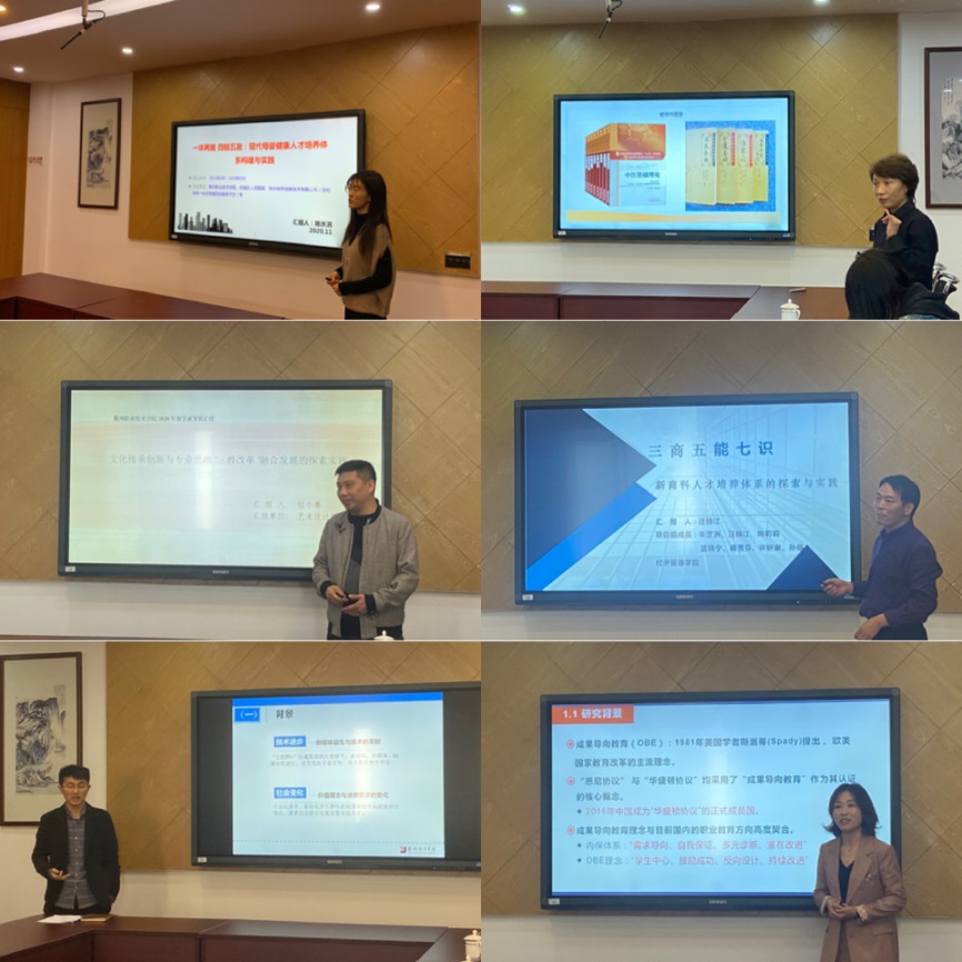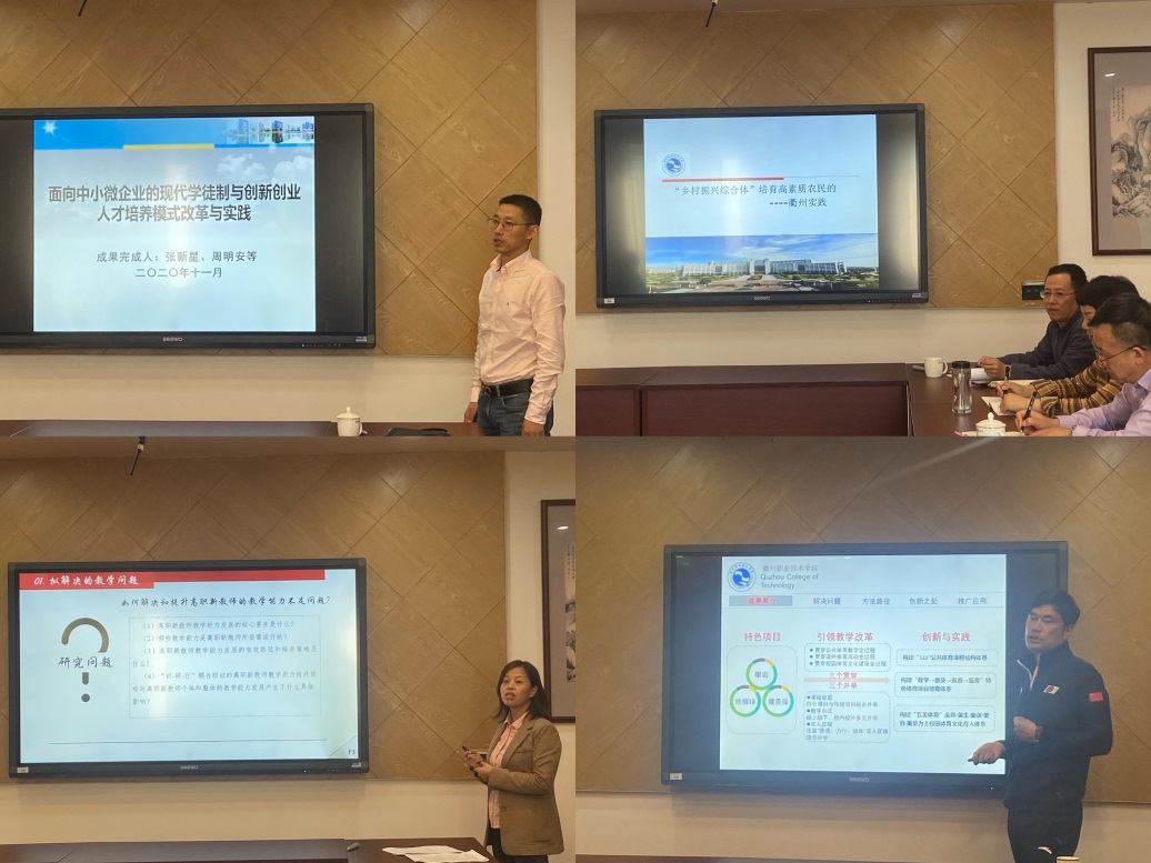 医学院张燕副院长、医学院朱美香副教授、艺术设计学院何敬老师、艺术设计学院陆小赛教授、经济管理学院汪榜江副院长、信息工程学院李杰副教授、机电工程学院张新星副教授、继续教育学院周华副院长、文化旅游学院何雪莲副院长、文化旅游学院郭大勇院长依次对各教学成果奖申报项目进行汇报。