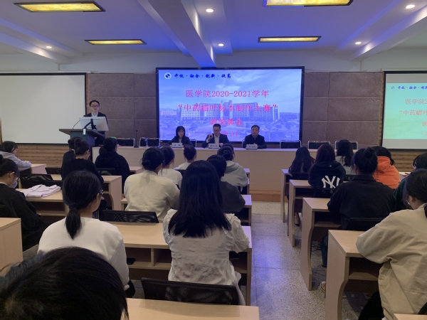 11月4日下午,医学院在实训楼多功能厅举行中药腊叶标本制作大赛颁奖典礼,医学院院长姚水洪,党总支书记余文富,副院长张燕以及19级、20级中药专业学生代表出席本次典礼,会议由中药学专业主任甘椿椿主持。
