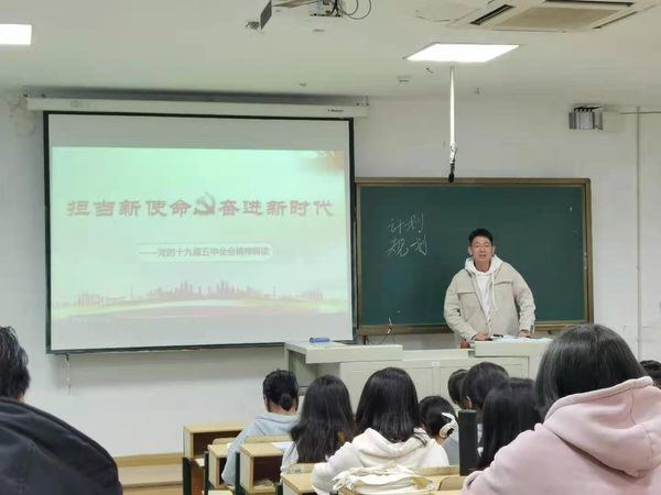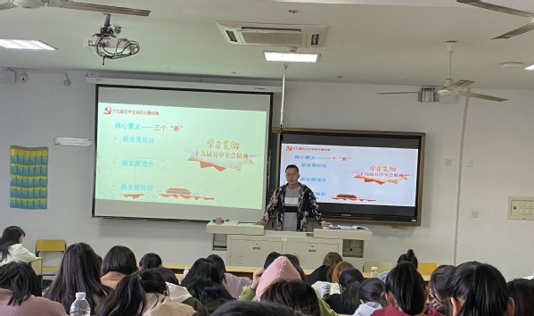 11月13日、14日,马克思主义学院通过《形势与政策》课,向全校一、二年级学生开展十九届五中全会精神的集中宣讲,推动全会精神进课堂、进头脑,用全会精神凝聚人心、催人奋进。