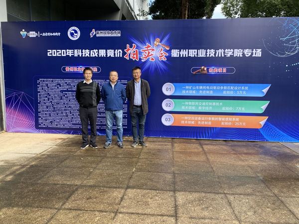 竞价(拍卖)会上,李培江教授/博士所研发的科技成果——一种空压设备运行参数的智能感知系统,起拍价为25万元,经过多轮竞拍,最终山海机械有限公司以35万元成交;机电工程学院方晓汾老师的科技成果——一种矿山车辆纯电动驱动参数匹配设计系统,起拍价为5万元,被衢州海西电子科技有限公司以20万元收入囊中;信息工程学院江达飞老师的科技成果——一种物联网交通控制器技术,被浙江信安智能科技有公司以10万元拍得。3项科技成果总成交价为65万元,溢价率高达75.7%。
