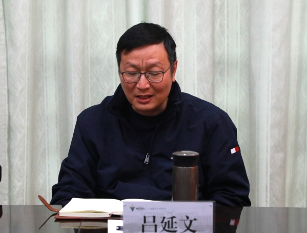 校长吕延文发言。他说,感谢吴健同志多年来为学校内涵建设做出的贡献,及对后辈教职员工倾尽全力的培育帮扶,这都为学校未来发展奠定了深远影响,希望吴健同志继续关注学校的发展。