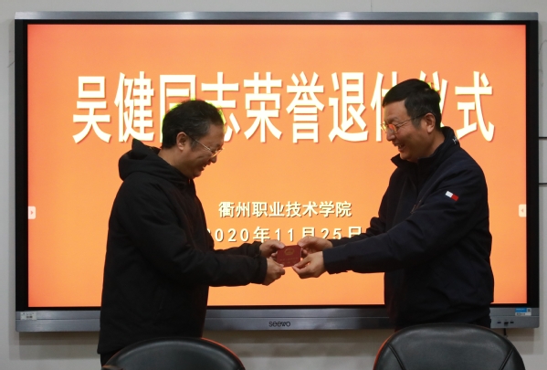 11月25日下午,在我校兢兢业业工作了38年,为学校教育教学和人才培养作出巨大贡献的原副校长吴健同志光荣退休仪式在行政楼五楼举行,仪式由党委副书记王东升主持。