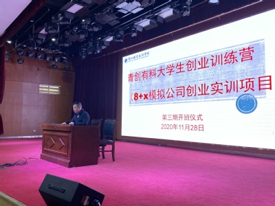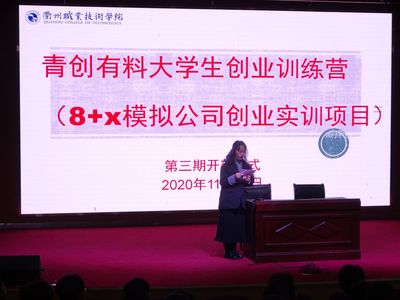 11月28日,由衢州市人社局主办、我校创业学院承办的第三期8+X模拟公司创业实训项目开班。