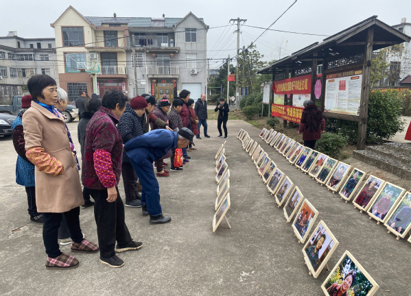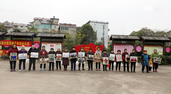 “村广场上相片摆起来了,我看到有你的哩!”双溪村68岁的村民张大娘吆喝着。村文化广场上一幅幅村民自己的肖像作品正在展出,围拢过来的村民们看着照片喜上眉梢,不时还和身旁的老人交流,看看照片里谁笑的最好。12月8日,江南网页版艺术设计学院“艺行者”教师志愿服务队再次来到江山市四都镇双溪村,将前次已经拍摄好、完成打印、装裱的相片,用相框、支架放置在村文化广场上,一场简易却不简单的乡村摄影展悄然登场。