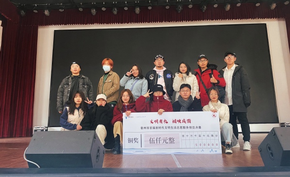 12月15日,艺术设计学院艺能量志愿服务队来到龙游县溪口乡村未来社区代表学校参加衢州市首届新时代文明生活志愿服务项目决赛,通过精彩的话剧演绎,从28个节目中脱颖而出,获铜奖。