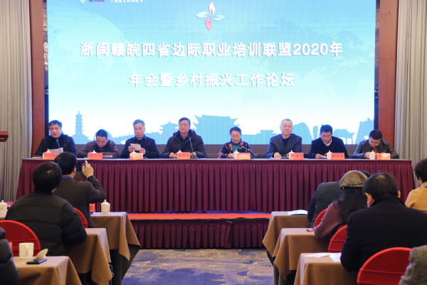 12月22日至23日,浙闽赣皖四省边际职业培训联盟2020年年会暨乡村振兴工作论坛在浙江开化隆重举行,此次活动由我校和衢州市教育局、衢州市人社局、衢州乡村振兴学院共同主办,年会和论坛以“职业教育助力乡村振兴”为主题,旨在共谋发展,携手共商联盟高质量发展大计,交流联盟推进四省边际乡村振兴战略的新思路与新举措。校长吕延文出席年会和论坛并做主旨演讲。年会由我校党委委员、副校长傅元勋主持。
