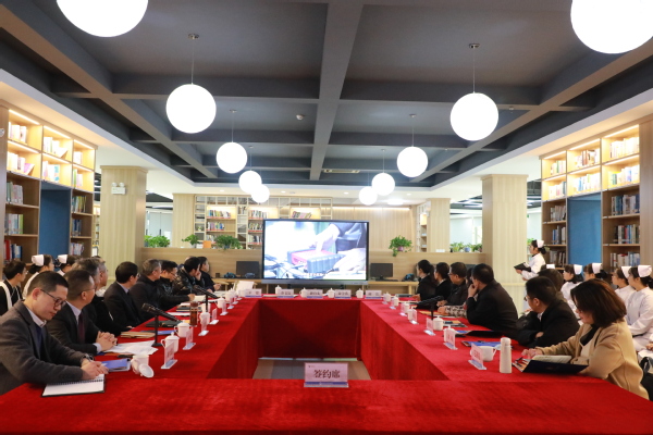 徐须实介绍我校学校专业设置、师资力量、社会服务等方面的基本情况。与来宾分享我校“四省边际大健康公共实训中心”项目被省发改委等10部门立项为省“五个一批”产教融合工程项目,以护理专业为核心的医护康养专业群立项为浙江省高水平专业建设群等喜讯。他指出,我校作为我市唯一一所办有医药类专业的高等院校,承担着为衢州及周边地区培养医护大健康人才的重要使命,70年来为社会培养输送了一大批优秀的医护人才和卫健管理干部。他深入剖析我校具有高度契合中医药传承创新的时代要求;弘扬杨继洲针灸文化思想精髓的需要;申办过程中,得到各级政府部门的大力支持,得到行业专家的精准指导,召开三次高级别的专家论证会等天时地利人和的申办条件,明确下一步如何从高标准建设“杨继洲学院”,高起点培养针灸专业人才,高质量培养师资队伍等三个方面建设针灸专业的思路和想法。