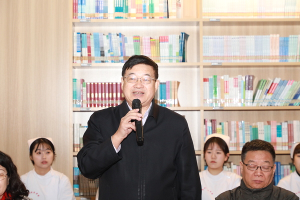刘保延一行参观医学实训中心,艺术设计实训楼,图书馆,并在图书馆X考证中心召开座谈会。座谈会由副校长巫少龙主持。