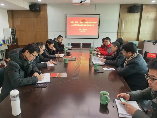 1月8日下午,在机电大楼307会议室举行“中职、高职、企业”一体化现代学徒制人才培养模式的探索与实践研讨会。衢州中等专业学校全国优秀教师杨宗斌教授、红五环集团公司郑舜、机电工程学院院长周明安及部分专业主任等参加研讨会。