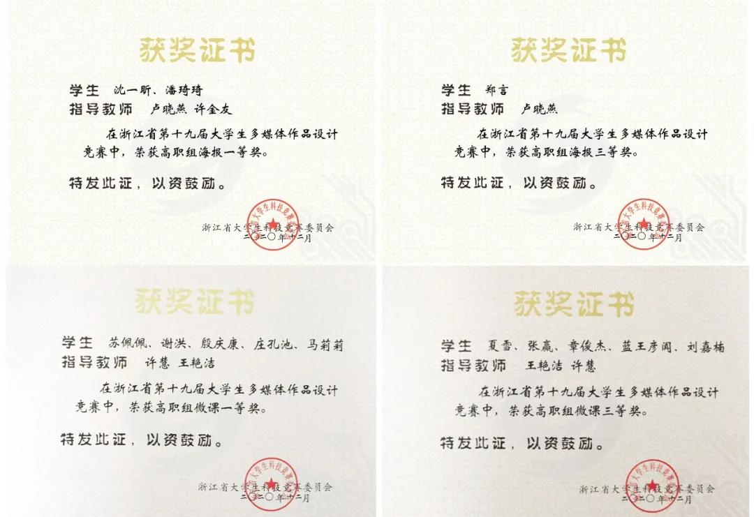 近日,江南网页版斩获浙江省第十九届大学生多媒体作品设计竞赛一等奖2项、三等奖2项。