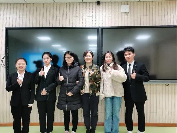 苏佩佩、谢洪、殷庆康、马莉莉和指导老师许慧、王艳洁合影留念