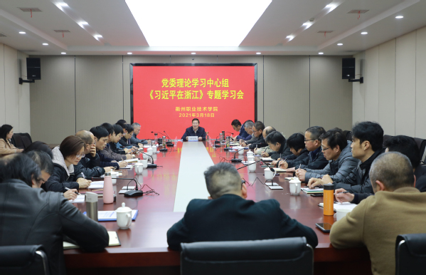 3月18日,校党委理论学习中心组举行会议,专题学习《习近平在浙江》采访实录。党委书记徐须实主持会议并讲话。徐须实强调,学习《习近平在浙江》,是重大的政治任务,全校上下要深入学习贯彻《习近平在浙江》的主要内容和精神实质。校党委理论学习中心组全体成员、各二级学院党总支书记、直属党支部书记、民主党派代表参加会议。