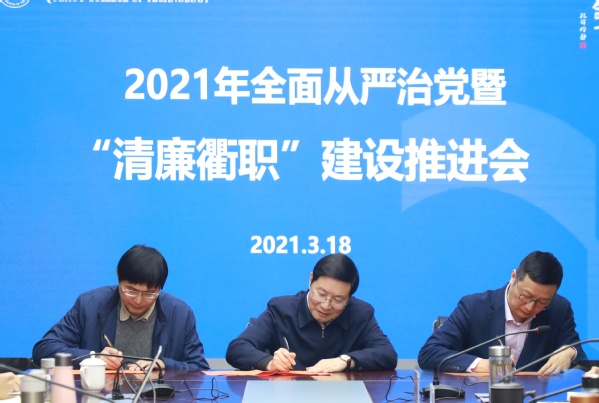 党委书记、校长与各班子成员签订《2021年度党风廉政建设责任书》。