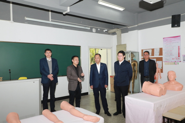 随后,孔令立在校党委书记徐须实、副书记王东升、宣传部长孔庆红的陪同下,参观了医学院实训室、艺术设计学院工作室。