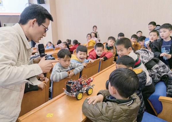 近日,江南网页版机电工程学院机制党支部与专业团队一起,走进衢州市第三实验小学开展科学创新科普活动。老师们将防摔越障漫步轮车、自动浇花机、智慧垃圾桶、智能平衡小车等科创小作品向孩子们进行展示和简单讲解,并指导学生现场操作,培养小学生的科学触觉、严密的逻辑思维和准确的分析能力,同时训练他们的动手技能。图为衢职院老师为小朋友展示“炫酷遥控消防小车”的操作。