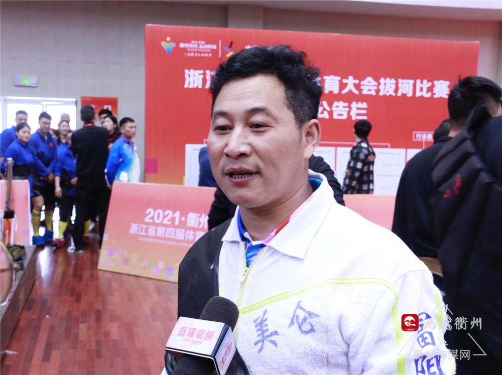 9:45,衢州队运动员梅建勋说:“我们提前三个月就开始集训了,连续取得胜利非常开心,我们的目标是夺得金牌!”