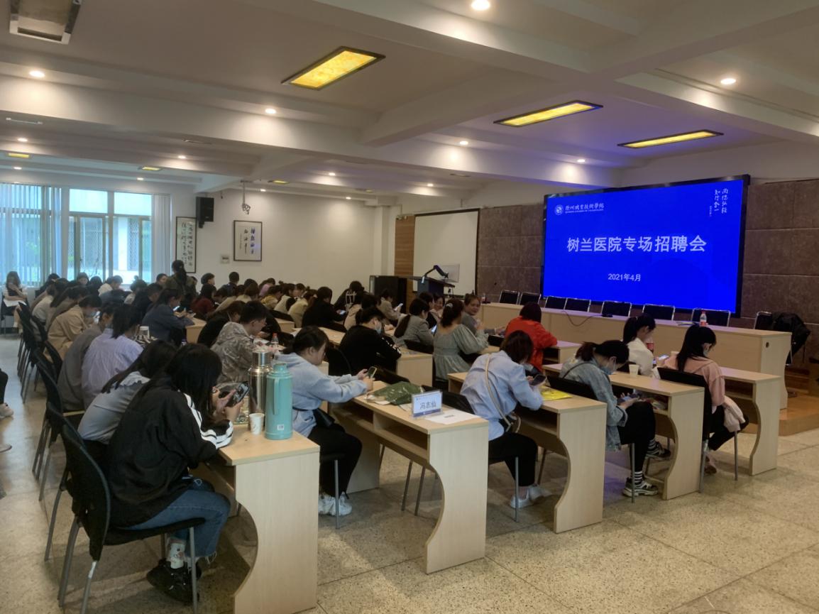 经过为期2周的毕业生动员以及精心筹备,4月25日上午,树兰(衢州)医院来我校举办医护人员专场招聘会,校园招聘会现场设在医学院实训楼多功能厅,共有80余名护理、助产专业应届毕业生参加招聘。