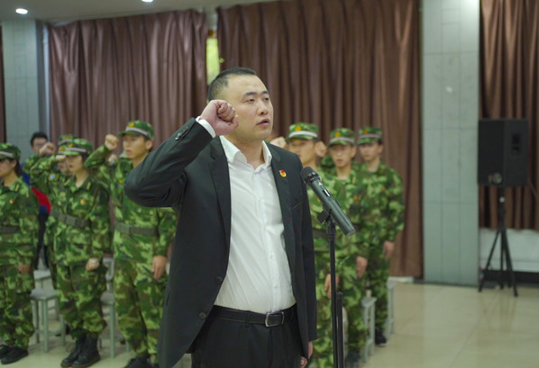 青春心向党,建功新时代。为实现中华民族伟大复兴的中国梦而奋斗,是我们人生难得的际遇。每个青年都应该珍惜这个伟大时代,做新时代的奋斗者。国旗护卫队联系领导、团市委书记徐元玮带领全体团员面向团旗庄严宣誓。