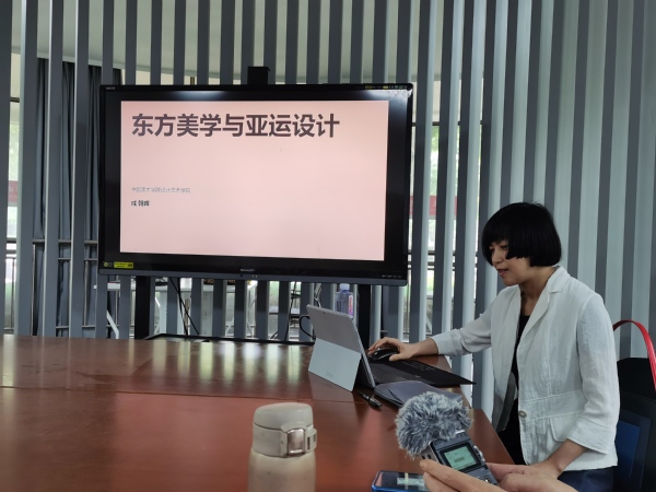 5月26日,中国美术学院设计艺术学院副院长、博士生导师成朝晖教授在艺术楼刘琤工作室举办《东方美学与亚运设计》学术讲座。许金友主持讲座。