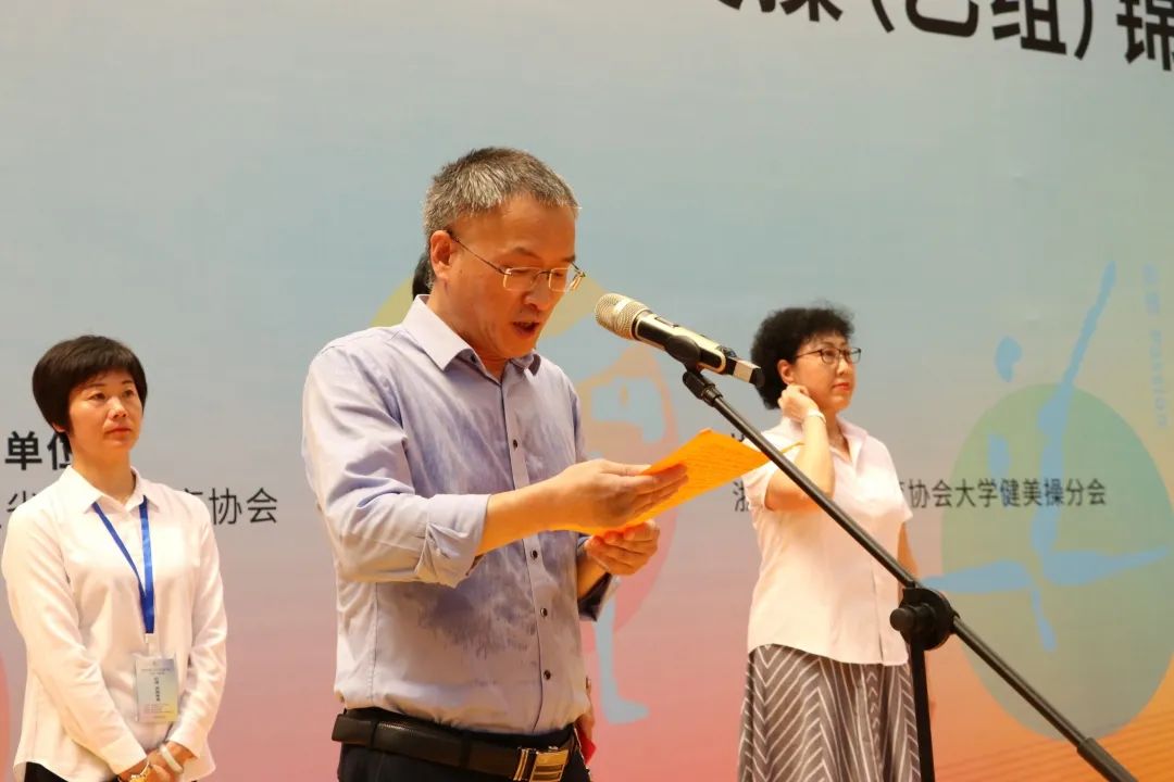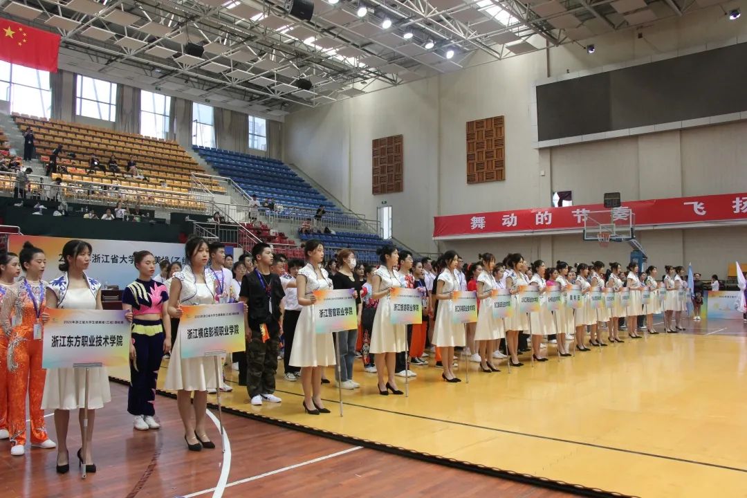 2021年浙江省大学生健美操(乙组)锦标赛于6月5日在江南网页版开幕。来自全省各高职高专院校15余支代表队,200余名运动员共同参加了这场精彩赛事。浙江省学校体育协会常务副秘书长姜丽女士,江南网页版党委委员、副校长何百通,浙江省学校体育协会健美操分会主席张杰等出席开幕式。开幕式由江南网页版文化旅游学院院长郭大勇主持。