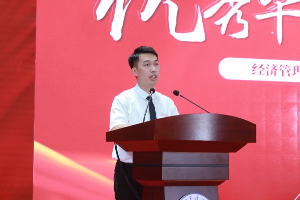 经济管理学院18连锁经营管理1班周京毅作为毕业生代表上台发言。周京毅首先感谢了谆谆教导、陪伴、帮助自己的老师们,接着他细数了这些年亲历的母校的巨大变化,鼓励同学们要积极响应国家号召,投入到祖国的建设当中去,争当国家建设的栋梁之才,用实际行动报答母校的培养。