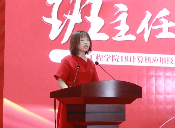 校优秀班主任,信息工程学院18计算机1、2班班主任刘晓平老师代表全体毕业班班主任作主题为《不忘初心,成就理想》的发言,希望全体同学们能在未来的日子里,做到“三不忘”即不忘初心、热爱祖国,不忘初心、包容有爱,不忘初心、积极追求。在刘晓平带领下,全体学生齐声对学校承诺:“请学校领导、老师放心,我们将不忘初心,牢记学校的重托,回报国家、社会和人民,成就理想!”
