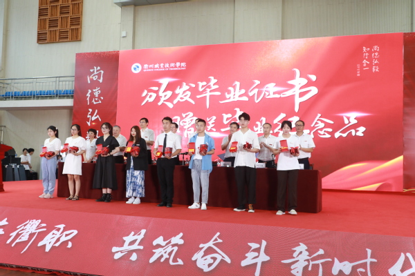 校党委书记徐须实做题为《祝同学们一路阳光》的毕业致辞。他表示,本次毕业典礼是我校2010年独立办学以来,首次集中举行的全校性的毕业典礼,此举不仅是为了给同学们大学三年生活画上一个圆满的句号,更是希望为同学们踏上人生征程时再鼓一次劲、再加一次油。他向毕业生们提出了三点希望:一是要始终坚定理想抱负,“矢志追求更有高度、更有境界、更有品味的人生”;二是要始终坚守道德良知,坚守是非善恶的底线,以德立身、以德立业、以德致远;三是要始终坚持努力学习,他强调走出校门不是学习生涯的结束,而是新一轮深造的开始,不必耿耿于怀于当前的学历,只要坚持学习,必定能走得更远、取得更大的成就!最后,徐书记祝福毕业生们前程似锦、一路阳光,欢迎毕业生们能常回家看看!