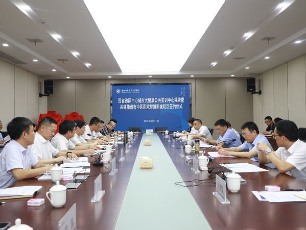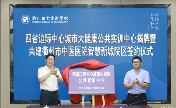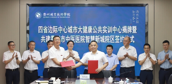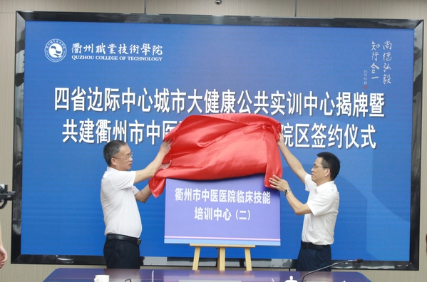 校长吕延文与衢州市中医医院院长廖小方签订共建衢州市中医医院智慧新城院区(衢职院附属医院)协议。双方将以共建四省边际中心城市大健康公共实训中心生产性实训基地为合作平台,加快健康产业转型升级,形成主体多元、办学开放的现代职业教育体系和产教融合的办医方式。