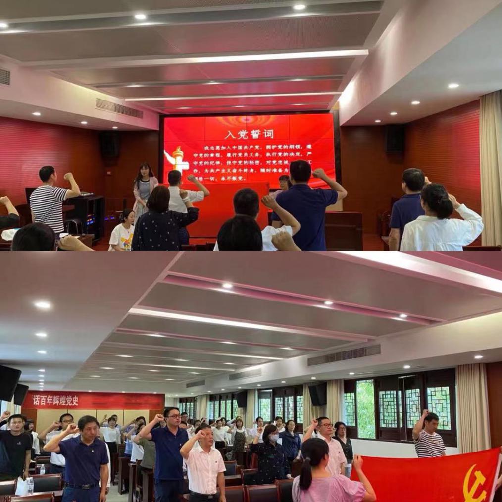 讲解参观结束后,全体党员面对着鲜红的党旗,重温了入党誓词。