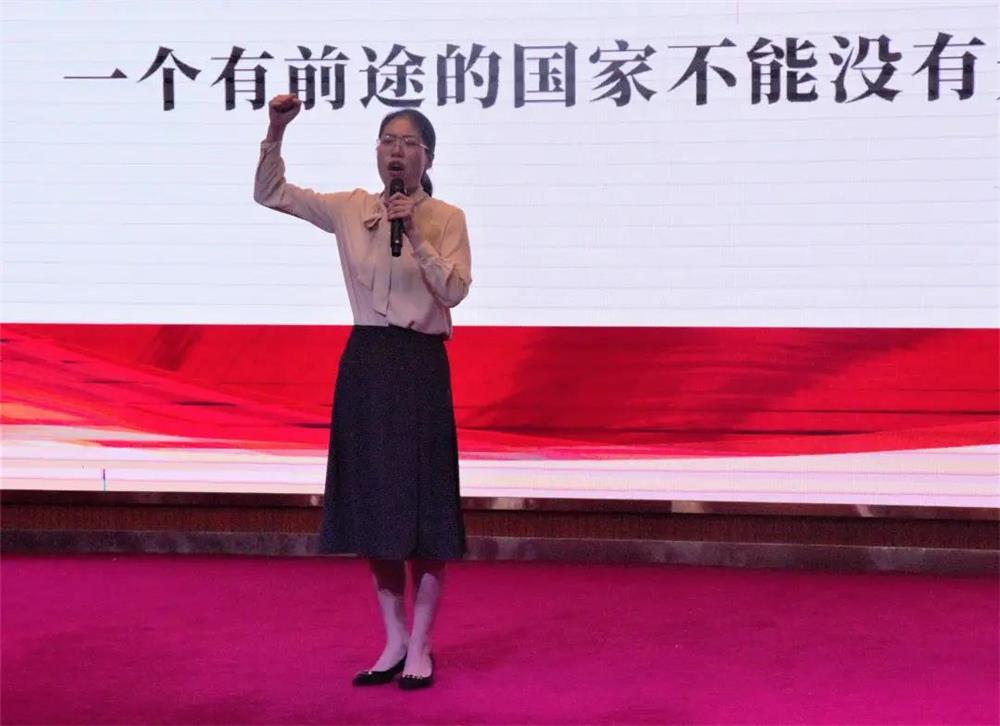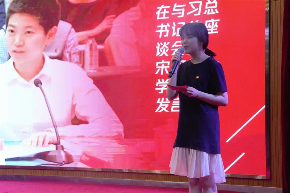 机电工程学院教师朱郑乔若带来宣讲《青春有你 奉献有我》。一生择一事,一事终一生,宣讲讲述了张桂梅笑对人生风雨坎坷,始终坚守在祖国西南边陲的教师岗位上的感人故事;我校教师周明安历经癌症洗礼,从未改变过对教书育人的初心,号召青年教师用情怀抒写担当,用实际行动践行一名人民教师的责任与担当。
