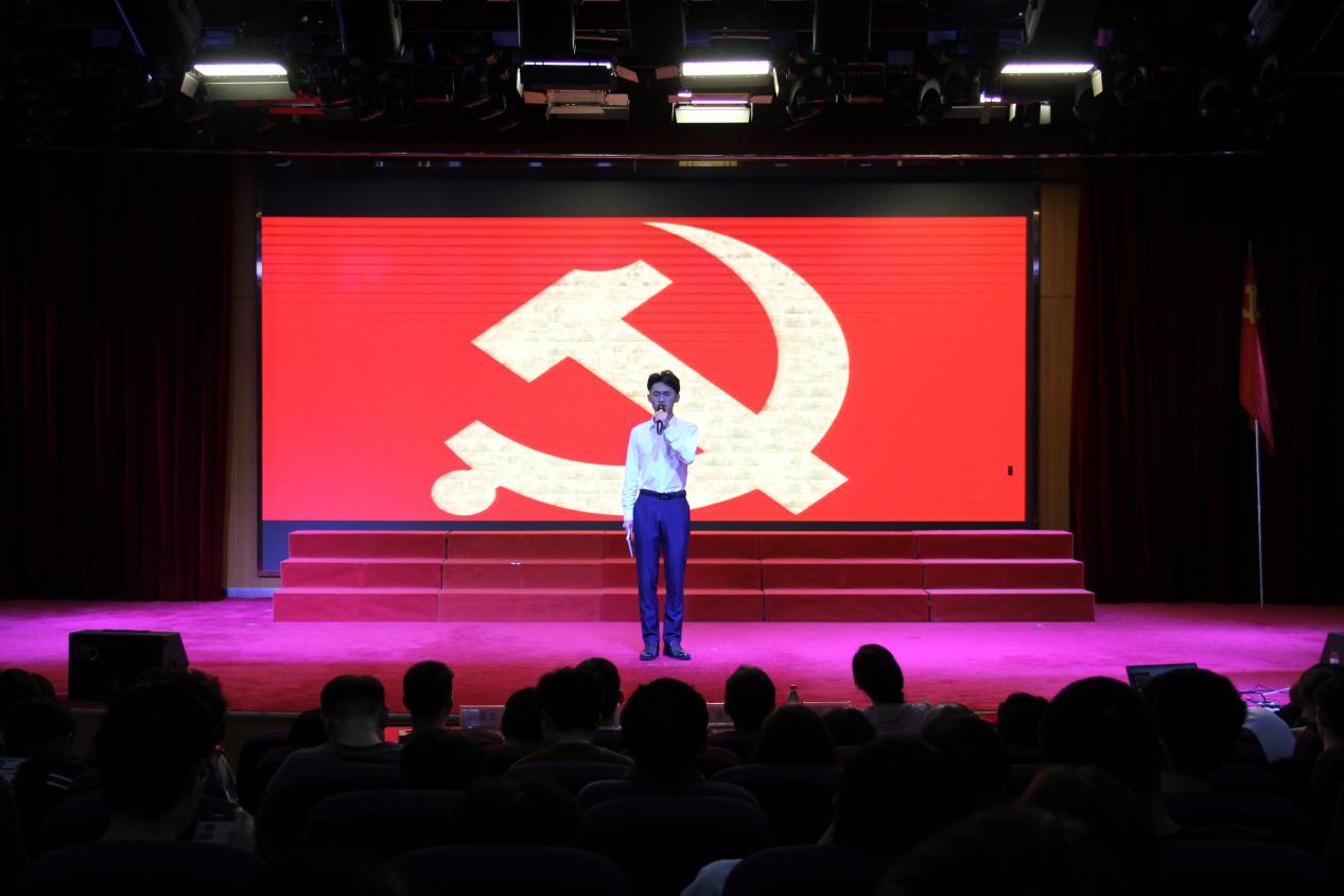 “我志愿加入中国共产党……随时准备为党和人民牺牲一切,永不叛党。”随后,刘亚歌同学带着郭老的殷殷嘱托,带领信息工程学院最新发展的全体预备党员面向鲜红的党旗,庄严宣誓。