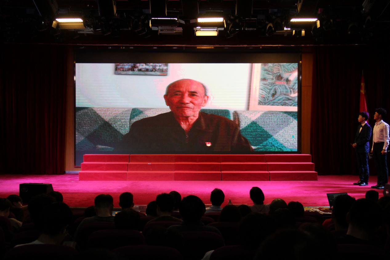“我是共产党员郭城,很高兴能以这样的方式和大家见面……”今年已经91岁的老党员郭城因为身体原因无法来到晚会现场,所以录制了一段视频寄语青年师生,希望青年一代发扬革命光荣传统,为新时代中国特色社会主义做出新的贡献。