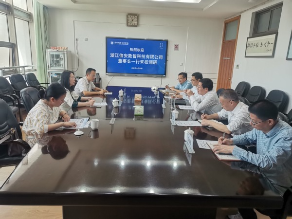 6月25日上午,浙江信安数智科技有限公司董事长李馨等一行3人来校走访调研,实地走访了信息工程学院和医学院,并与我校领导进行了座谈交流。校党委书记徐须实、副校长何百通陪同调研。