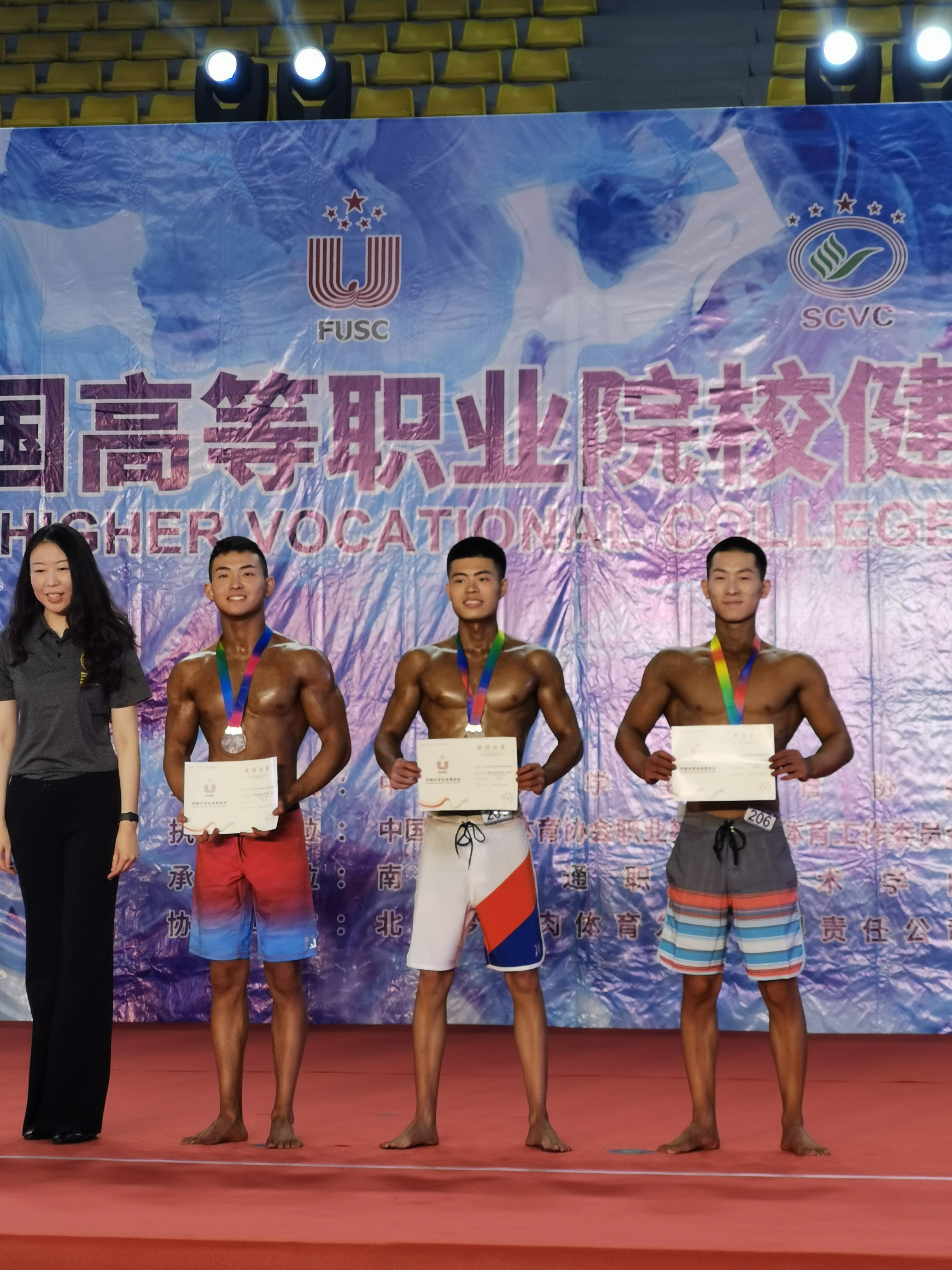 6月18-20日,第三届中国高等职业院校健身健美锦标赛在江苏南京火热举行。此次比赛由中国大学生体育协会主办,南京交通职业技术学院承办。来自全国31所院校近300名运动员同台竞技,分设阳光组、超级组、精英组三个组别。我校健身健美运动队共派出7名运动员参赛,最终4人获奖,获得1金1铜,1个第四名1个第六名的好成绩。