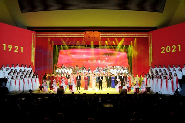 献礼建党百年,讴歌百年华诞。6月25日晚,“永远跟党走”衢州市庆祝中国共产党成立100周年文艺演出隆重举行。演出以“颂歌”的风格作为抒情主基调,以交响乐队和合唱队为主要表现形式,综合运用演唱、舞蹈、戏曲、情景再现、朗诵、动态展示等艺术手段,以诗画的形式呈现党的百年历史。