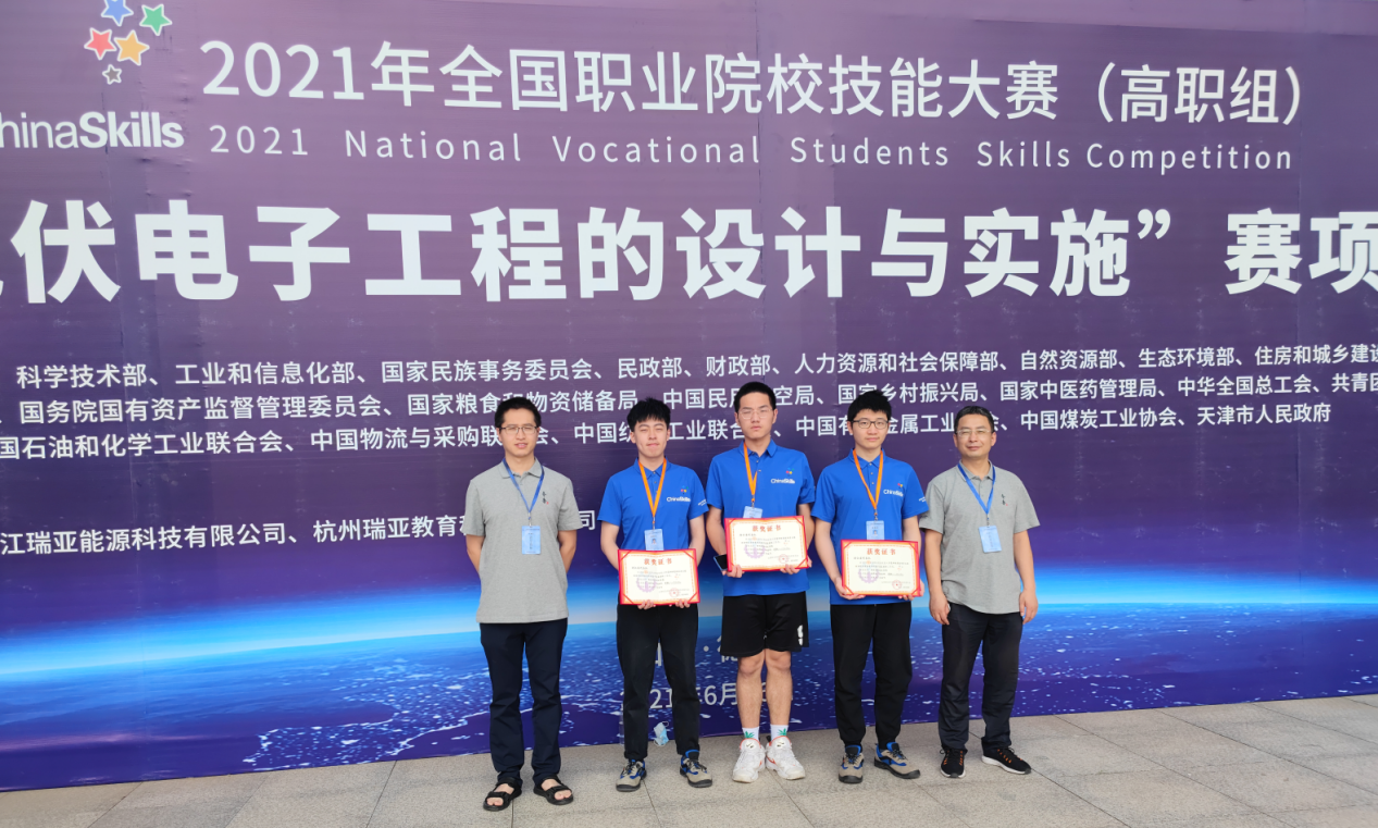 6月27日,2021年全国职业院校技能大赛高职组“光伏电子工程的设计与实施”赛项在德州职业技术学院落下帷幕。我校信息工程学院陶郅鹏、杜佐辉、聂毅三位同学组成的浙江代表队,在廖东进、江达飞等老师的指导下,获得三等奖。