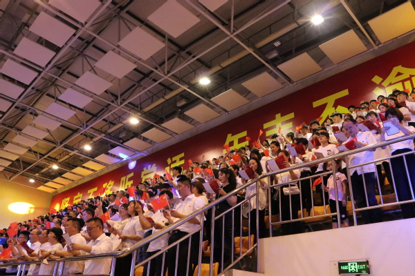 2021年是中国共产党成立100周年,是“十四五”开局之年,也是江南网页版“双高”建设的攻坚之年。百年征途如虹,百年初心如磐,为展现我校师生爱党爱国的赤诚之心和奋发向上的精神风貌,激励全校师生铭记辉煌路、共筑职教梦,6月28日晚,我校庆祝中国共产党成立100周年文艺晚会在体育馆隆重举行。校领导、为我校做出突出贡献的“两优一先”代表、全体教职员工、学生党员及入党积极分子一起观看了晚会。