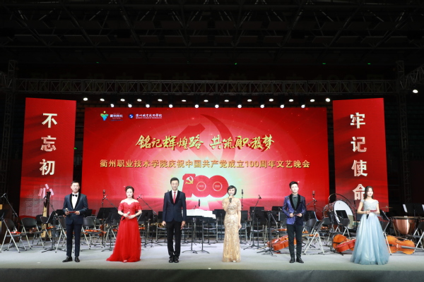 最后,晚会在《没有共产党就没有新中国》的歌声中落下帷幕。“共产党辛劳为民族,共产党他一心救中国,他指给了人民解放的道路,他领导中国走向光明……”高亢激昂的歌声引发全场共鸣,家国情怀中回应着对祖国的美好祝福,也传递出衢职人牢记初心使命、奋发图强的气魄和志向。