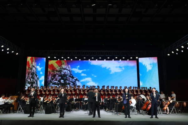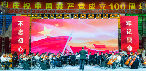 晚会在交响乐合奏《红旗颂》拉开序幕,《百年恰是风华正茂》、《祖国不会忘记》、《我爱你中国》、《我和我的祖国》、《共和国之恋》、《没有共产党就没有新中国》等节目各具特色,汇聚了交响乐合奏、党史宣讲、配乐诗朗诵、女声独唱、合唱、男生小组唱等艺术形式,讴歌了百年大党的光辉历程和丰功伟绩,抒发了衢职院师生爱党爱国爱社会主义的深厚情感,表达了我校师生听党话感党恩跟党走的坚定决心。既是一场精彩的文艺盛宴,也是一堂生动的党史学习教育课。