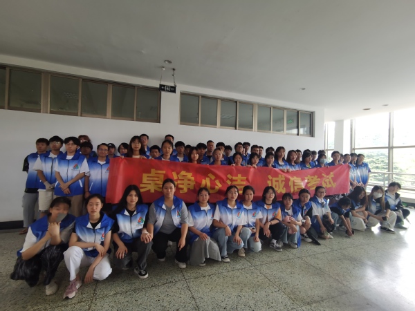 为迎接期末考试,为诚信考试“保驾护航”,学生处号召各班级开展“桌净心洁 诚信考试”志愿活动。活动开展以来,2020级各班学生在二级学院的组织下,对本班所有教室进行了打扫。同时,学生处组织了70名二级学院学生志愿者,走进41间公共考试用教室,使用起去污粉、小铲子、清洁球等清洁工具,对“三面”(地面、墙面、桌面)进行了细致的打扫。打扫完后的教室整洁如新,顽固污渍都不见了,打造出一个老师“放心”、学生“不多心”的考试环境。