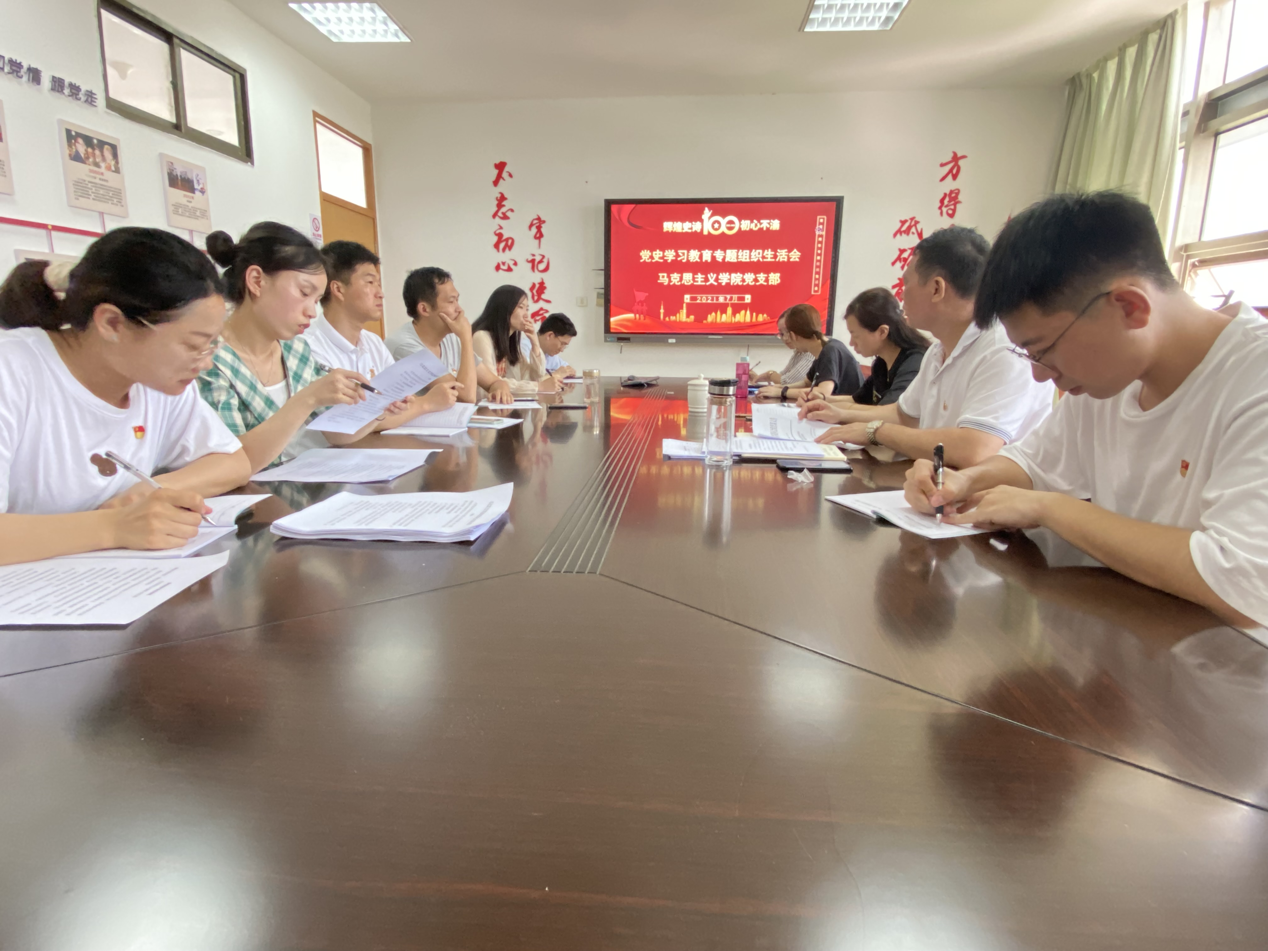 7月3日下午,马克思主义学院党支部在行政楼801会议室召开党史学习教育专题组织生活会,引导党员教师提高党史学习教育质量,增强“四个意识”、坚定“四个自信”、做到“两个维护”。