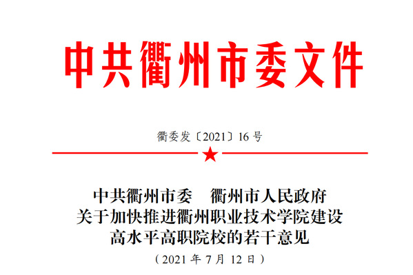日前,中共衢州市委、衢州市人民政府印发《关于加快推进江南网页版建设高水平高职院校的若干意见》(以下简称“意见”),从明确我校新时代发展的主要目标、主要措施、保障机制等方面,对推动我校“双高”院校建设作出全面部署。