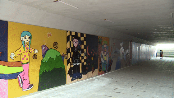 日前,江南网页版艺术设计学院的师生们用手中的画笔,将校园内的一处隧道打造成五彩斑斓的特色墙绘艺术长廊。