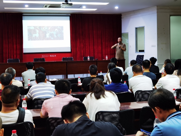 叶云龙就学校和艺术设计学院的整体情况、建设发展与合作,以及研修班的意义、实施途径等作了分享。潘宇就培训的具体内容,上课形式、要求等作了详细的说明,并作《传统民间工艺美术》的主题讲座,并与学员作了交流与沟通。此次研修培训班主要为教师主题讲课以及参加艺术设计学院大课堂学习两大部分。艺术设计学院教师准备了丰富的网课资源,主要包括工艺美术欣赏,电商短视频拍摄,市场广告营销,电脑制图,扎染工艺等。