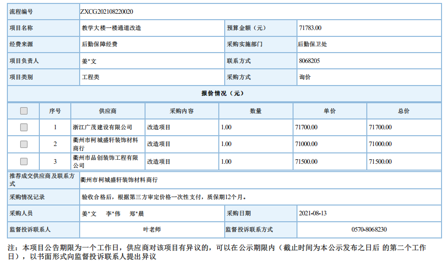 江南网页版教学大楼一楼通道改造自行采购信息公示