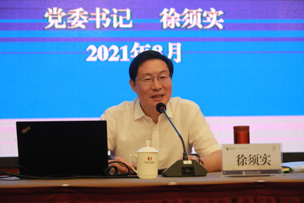 徐须实传达了市委七届十次全会上汤飞帆书记作的题为《实干争先 加压奋进 全力推进四省边际共同富裕示范区建设》的工作报告精神,对会上审议通过的《衢州高质量发展建设四省边际共同富裕示范区行动计划(2021-2025年)》中涉及到我校的内容进行了详细地阐述。